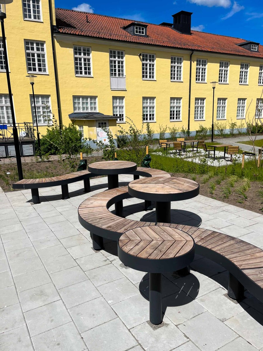 Widala utomhusbord modell Elements för offentlig miljö och olika typer av utemiljöer finns i tre olika runda storlekar. Valmöjligheten med flera olika runda former och bordens robusta konstruktion gör att de blir lättplacerade i de flesta miljöer.