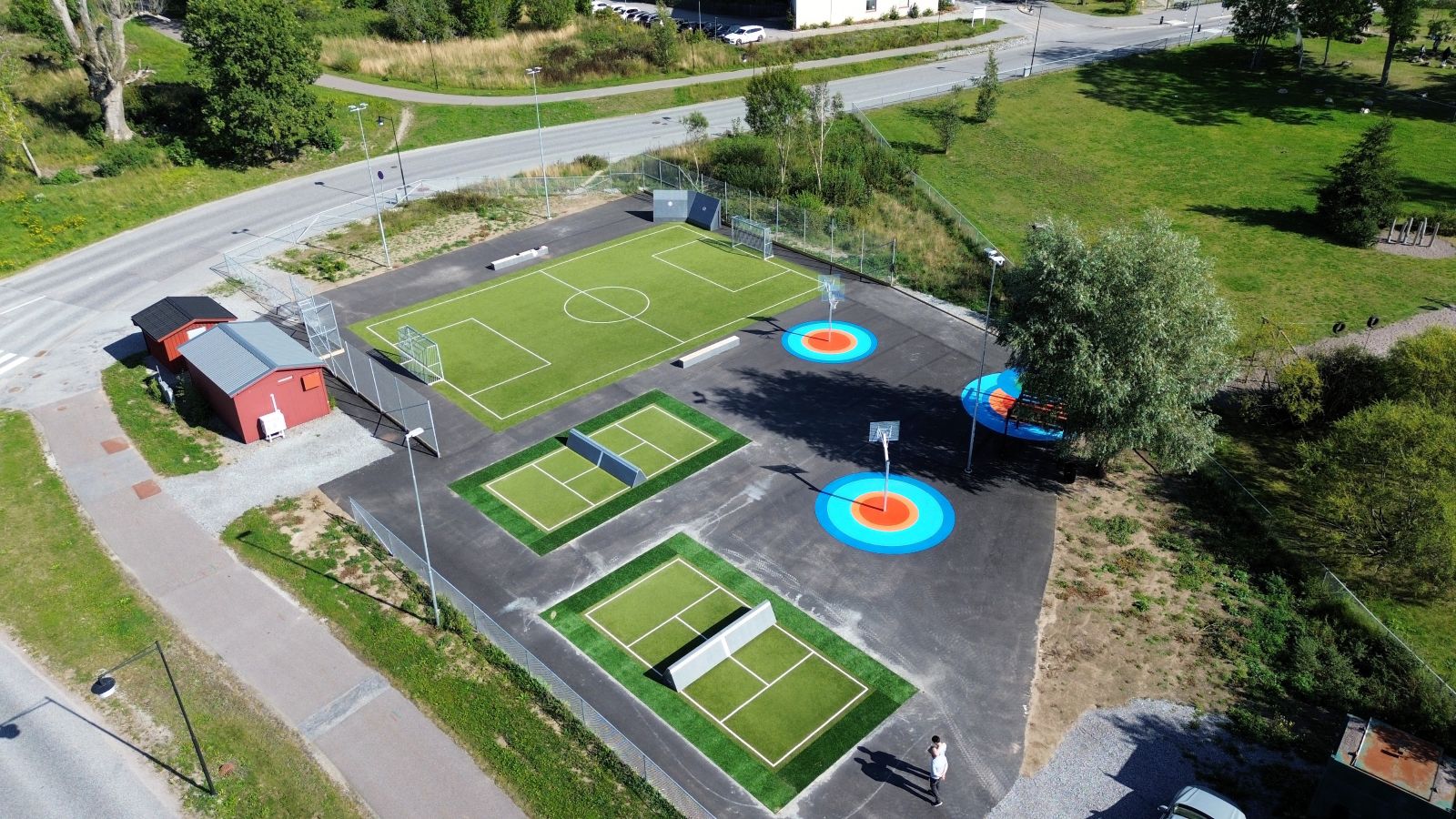 I Glasberga Sjöstad har vi, i samarbete med Orca, skapat en modern aktivitetsyta som uppmuntrar till rörelse, gemenskap och trivsel. Den tidigare outnyttjade och tråkiga parkeringsplatsen/grusplanen inbjuder nu till lek och aktivitet. Projektet är utformat för att möta behovet av en hållbar och inspirerande mötesplats för både barn, ungdomar och vuxna.
